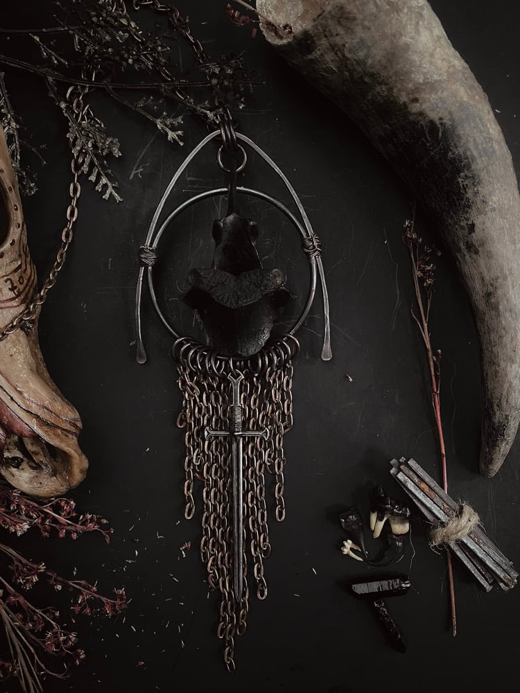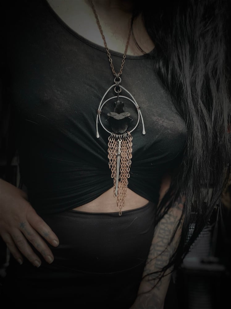 Gifted vertebra (unknown) with copper and stainless steel and copper chain.