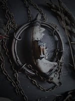 Opossum jaw bone with titanium black quartz and forged copper. Extra long copper chain.