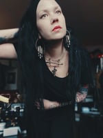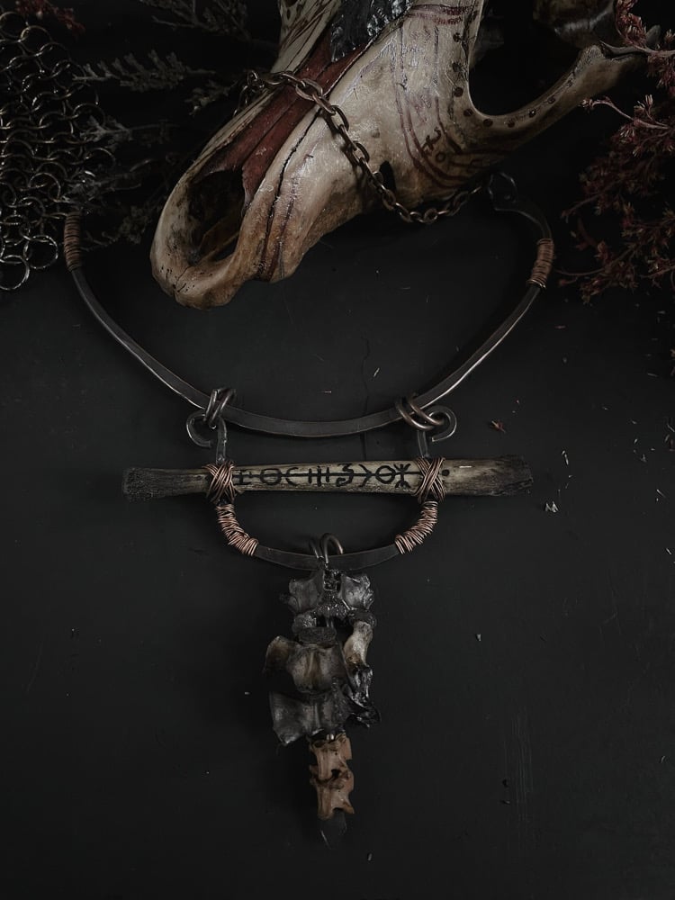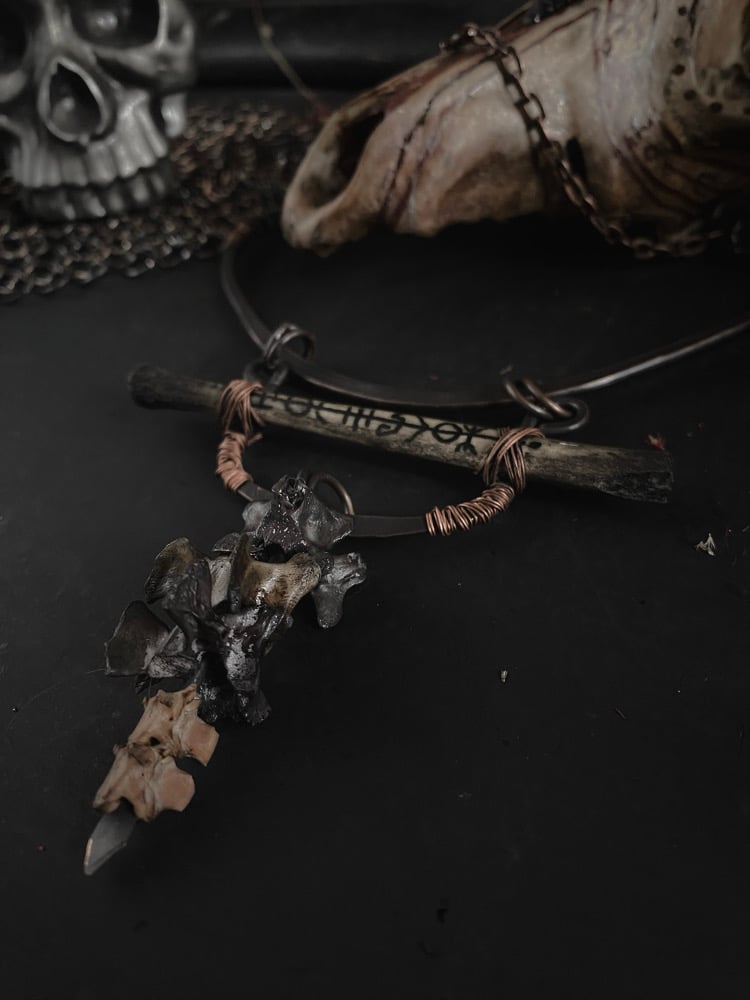 Hammered copper with hand painted sigil bone and roadkill/snake vertebrae dangle