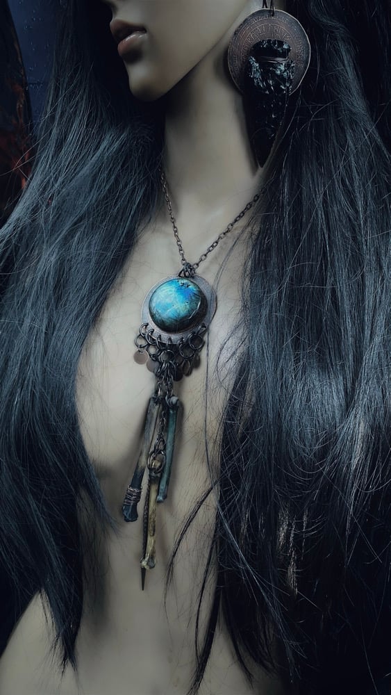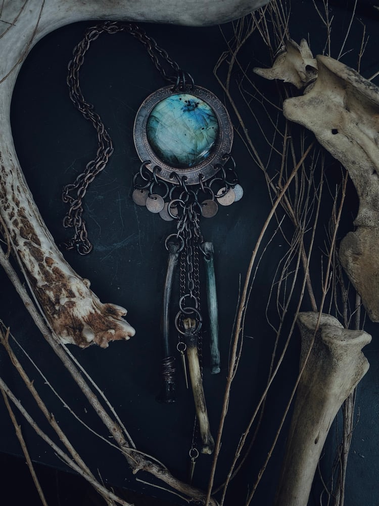 Relic with huge labradorite & dangle bones